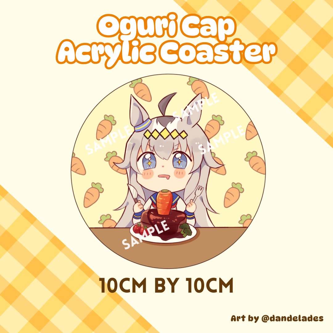 A cute acrylic coaster of Oguri Cap, illustrated by Dandelades!