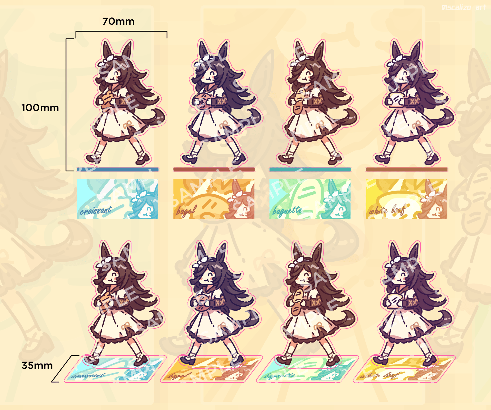 Choose your favorite bread! A selection of adorable Rice Shower acrylic stands, illustrated by Scalizo!